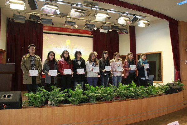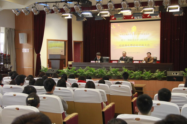 | 2013年11月20日,在明华楼五楼报告厅举行了第十一期新党员培训班结业典礼暨总结交流大会。全校预备党员共105人参加。党校副校长单杰主持。 工学院吴越人、管理学院赵安捷、教育与艺术学院王慧琦三位预备党员代表进行了交流发言;校监、党校校长邹荣庚作总结讲话。 | ||