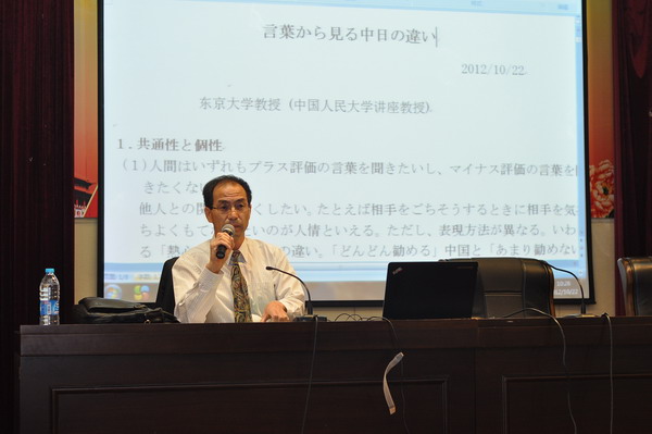 2012年10月22日上午,日本东京大学综合文化研究科杨凯荣教授在明华楼报告厅为我院师生作了一场题为《从语言来看中日差异》的学术讲座。