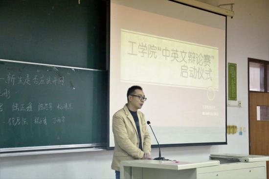 2016年11月8日中午12:00,工学院中英文辩论赛启动仪式在日阶301举行,出席此次启动仪式的有工学院副院长徐振,党总支副书记赵科、金玫,辅导员牛风学及2015、2016级各班班长和学习委员。主持人由2016级电子信息工程专业1班的韩乔新同学担任。