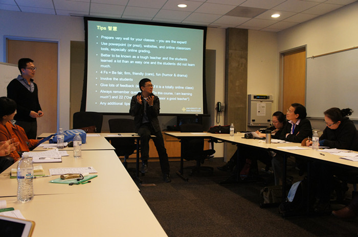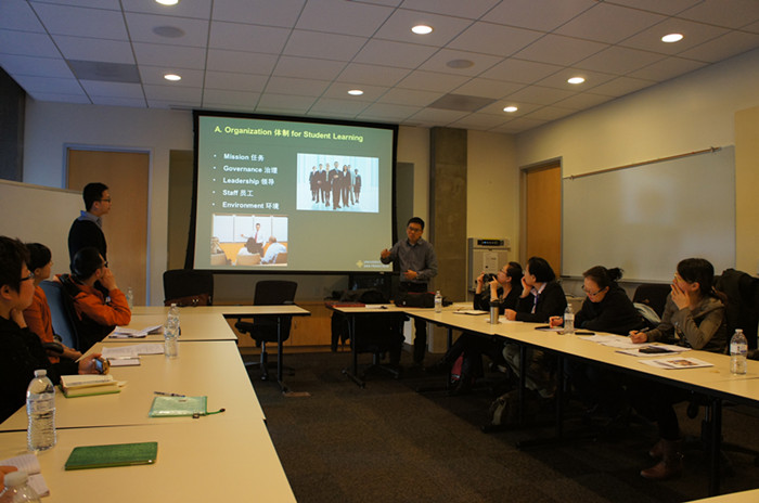 | 美国旧金山当地时间2014年1月21日下午13:30,我校寒假高等教育赴美研修团在党委书记韩晓玉、副书记曹云林带领下,与在国加州旧金山大学(University of San Francisco)学习。旧金山大学政治系政府与政治学教授Jay Gonzalez博士为我们做了题为“教师教学绩效考核”的讲座。 | ||