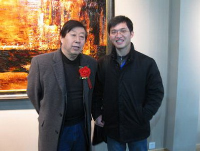 | 中国美术家协会主席刘大为先生(左)与马俊营在作品前 | ||