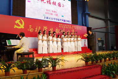 4月26日,为庆祝建党90周年,由团市委学校部主办的“理想火炬大接力,青春中国我能行”红色经典高校歌咏比赛,在上海工商外国语职业学院体育馆隆重举行。