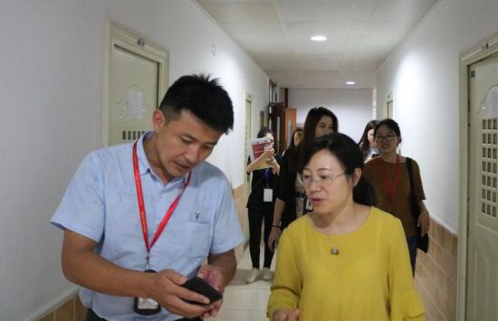 我院领导走访了7号学生公寓的新生寝室,与新生进行了亲切交谈,老师们就不同专业的学习发展目标和方式方法提出了宝贵的建议,并为新生一一解答他们的疑惑,化解他们初入大学的种种焦虑和不安,帮助他们尽快适应新的校园生活。常务副院长陈再阳对新生表示亲切关怀,关心询问学生来自哪里、是否对大学生活能够适应,强调宿舍和谐的重要性,希望同学们可以在相处中互相包容,互帮互助。在走访中陈院长对新生提出殷切希望,希望他们早做规划,踏实学习,打好语言基础。党总支书记杨央则叮嘱新生要珍惜良好的宿舍环境,做好日常宿舍卫生打扫工作,积极争创“和谐宿舍”,合理安排好学习、娱乐时间,注意作息。副书记刘庆奇对新生床铺收拾标准给予肯定,强调了宿舍安全用电等问题。