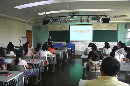 2015年9月2日下午,语言文化学院在明华楼演播中心召开了2016-2017学年第一学期新学期全体教职工大会。学院常务副院长陈再阳、副院长胡雅楠、各专业主任及全体教职工参加了会议。会议由常务副院长陈再阳主持。