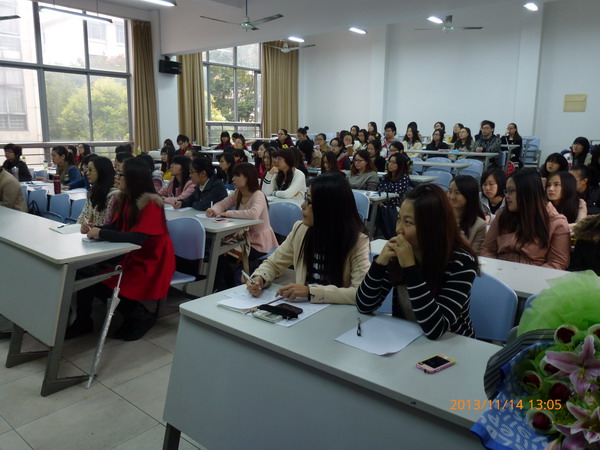 | 2013年11月14日下午1点,上海市嘉定区城中路小学骨干班主任王益老师为教育与艺术学院小学教育专业2010级、2011级的学生带来了一场名为《做一个智慧的班主任》的精彩讲座。指导教授夏明烨、小学教育专业主任焦姣、教育类专业党总支副书记韩苏曼以及小学教育专业教师万丽红参加讲座。 王益老师依据自己多年班主任工作经验,向同学们介绍了小学班主任的常规工作并结合自身工作案例与同学们分享了自己作为班主任恪守的三大原则,使同学们对小学班主任工作有了更进一步的认识与理解。讲座气氛热烈,师生互动良好,讲座结束后王益老师还耐心解答同学们所提的问题。此次讲座的开展使小学教育专业学生受益匪浅,更加明确成为小学班主任所需具备的素养与承担的责任。 | ||