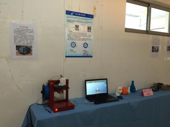 在总支副书记金玫、班助理负责老师牛风学、新生辅导员陈树平的指导下,班助理团队带领大一新生与赛思创客中心合作,精心安排,有序布置,展出工院学子的实践作品,如arduino智能机械人展示、电子社作品展示、树莓派机顶盒、3D打印机、无线电通信技术。