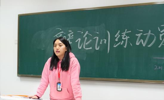 接着,张婷婷老师向同学们谈及开展辩论训练的原因。张婷婷老师认为作为未来的人民教师,必须具备优秀的口才、敏捷的思维能力和丰富的知识储备,而辩论训练正好可以训练同学们这几方面的能力,同时也可以锻炼同学们的胆量,让同学们敢想、敢说。