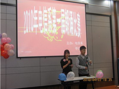 | 4月22日晚,电信系在日阶401举办了第一届朗诵比赛。学院党政办公室主任谢吕法、电信系团总支书记邱欣寅、电信系副辅导员朱锦荣和徐珊珊作为评委出席比赛。 本次大赛的主题为“诗情天华,抒学子豪情”,以此献给母校建校五周年贺礼。经过激烈的角逐,08通信2班张颖获一等奖、09通信2班刘春燕获二等奖,09电子班石彪和09通信1班王雪影、霍然获三等奖,09通信2班王茜、阳婷、杨滨嘉获最受欢迎奖。 (孙伟) | ||