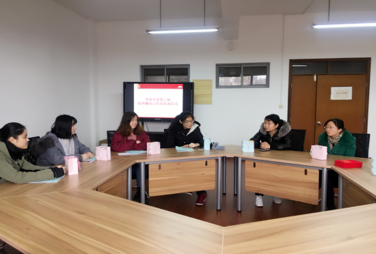 本届“应用翻译工作坊” 通过自愿报名、现场笔试的方式,共选拔了四名英语专业翻译方向的学生。从2017年10月至12月,工作坊与英语专业实习基地——江苏工程技术翻译院有限公司合作,聘请了资深翻译从业人员担任校外指导老师,为学员提供真实的、实用的翻译材料进行翻译练习,并对学员的译稿进行批改反馈。同时,由校内指导老师带领学员开展翻译实践讨论活动,每两周一次,就翻译练习中遇到的问题进行交流学习。