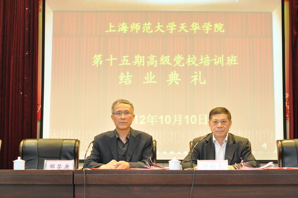| 2012年10月10日,第十五期高级党校入党积极分子培训班结业典礼在明华楼五楼报告厅举行。党委组织部部长、党校副校长顾绍元主持会议,党委副书记、党校校长邹荣庚作总结。 | ||