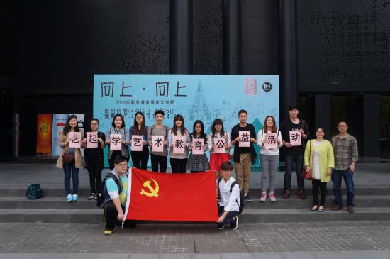 由于4月12日—4月26日,教育学院“向上·向上——2016届艺术教育专业毕业美术作品展”在嘉定区韩天衡美术馆展出。因此,结合美术作品展出之际,艺术教育专业第一支部发起“艺起学”艺术教育公益活动,该活动将全面配合2016届毕业美术作品展的进行,包括展出前后的会场布置、作品讲解、现场服务等志愿活动。