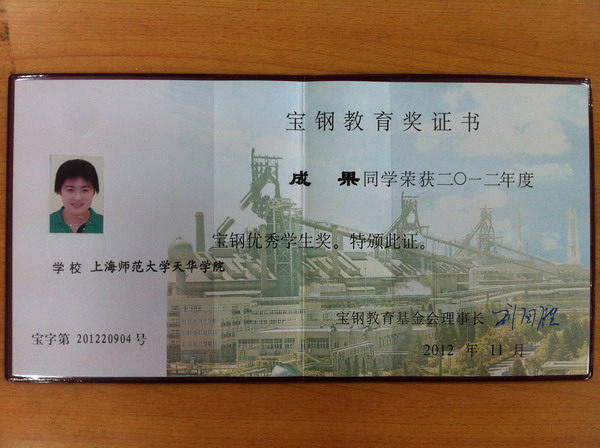 教育系成果同学喜获2012年度宝钢优秀学生奖