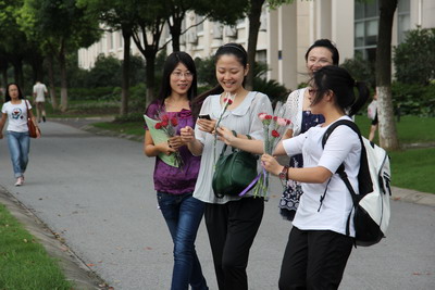 | 2012年9月10日是第28个教师节,校团委组织我院学生开展教师节献花活动。早上7时50分,当教师班车缓缓驶入校园,学生代表们为每位老师送上康乃馨。一句教师节快乐的祝福,一个明媚的微笑、一朵怒放的鲜花代表着天华莘莘学子对师恩的感激之情。 (团委) | ||
