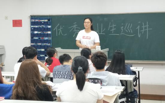2018年5月2日晚,语言文化学院德语专业在日华楼352教室开展了“优秀毕业生巡讲”活动。该活动旨在响应学校 “一份眷恋留天华,满腔激情走四方”倡议,也是我院2018届毕业生“八个一”感恩母校内容之一。活动邀请了2014级德语专业优秀学生干部、优秀班助理许雅雯,以自己的个人学习和实践经历,为德语大一学生带来了精彩演讲。