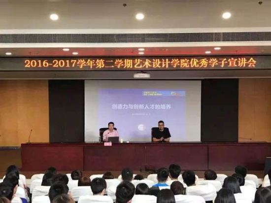 5月24日下午4:20分,艺术设计学院2016—2017学年第二学期优秀学子宣讲会于我校晖华楼报告厅热烈举行。本次宣讲会由艺术设计学院数字媒体艺术一支部书记沈捷老师主持。我校2010届毕业生张一恒作为本次宣讲会主讲人,与我院2016级的学子们进行经验交流。