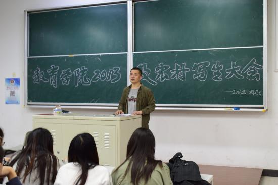10月23日下午2点,13级艺术教育毕业写生动员大会在日华楼101阶梯教室召开。此次写生活动是按照教育学院艺术教育专业培养计划,根据校实训处安排,于2016年10月24日-10月29日在安徽宏村画佳宾馆艺术写生基地进行。出席本次会议的老师有:校党委书记助理凌琦老师、艺术教育专业第一支部书记周丹妮老师、艺术教育专业第二支部书记刘欣老师、学前教育专业第一支部副书记吕黎老师、艺术教育专业主任杨莹老师、艺术教育专业老师陈昊老师以及曹勇老师。参加本次会议的学生来自13艺术教育专业2-5班美术方向约140个学生。