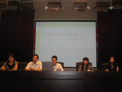 | 英语系“考研•出国•就业”主题交流月第二场活动,于2010年6月7日下午在明华楼五楼报告厅成功举办。英语系07级准毕业生和08级同学参加交流。会上06级毕业生熊为源、张颖、吴佳妮分别就考研准备、如何做一名称职的中学教师和面试技巧等畅谈了感想。常务副系主任史文出席交流,并讲话。(孙超) | ||