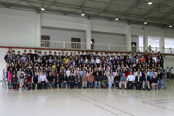 | 2013年5月9日上午,全体2009级学生返校在跃华楼体育馆内拍摄毕业集体照。学院党委副书记、学保处处长曹云林,学保处副处长刘天翔,学保处处长助理包静波等亲临现场。在各系党总支书记的带领组织下,拍照现场秩序井然,毕业照拍摄工作顺利完成。(学保处) | ||