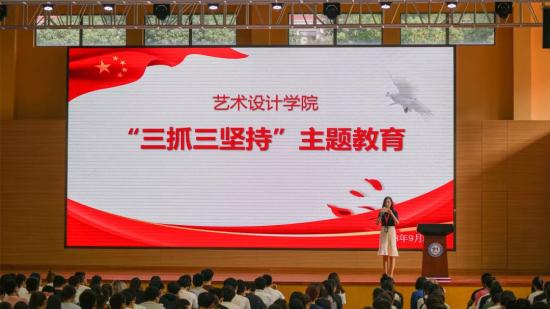 2018年9月19日上午9点,艺术设计学院2018级新生三抓三坚持主题教育会于体育馆召开。艺术设计学院党总支书记王慧荣、学院党总支代理副书记沈蕾、分团委书记刘婧及新生辅导员们出席了本次大会,15级优秀学生代表及家长代表共同参加了本次主题教育大会。此次会议由新生辅导员张枫云老师主持。