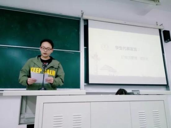 来自17物流管理2班的凌志云同学作为新生发言,讲述了自己对中英文辩论从陌生到熟悉的成长过程。
