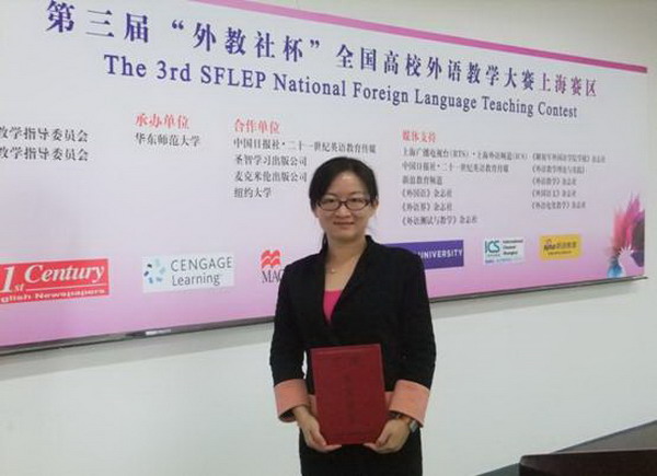 | 2012年10月20日至21日,第三届“外教社杯”全国高校外语教学大赛上海赛区总决赛在华东师范大学闵行校区举行,复旦大学、上海外国语大学、华东师范大学等22所高校共22位英语专业教师参加比赛。经过激烈角逐,我院英语系老师胡�荣获上海赛区总决赛二等奖。 | ||