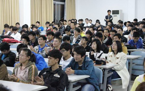 | 2012年11月1日晚,机械系党总支在日阶102教室组织开展了第三届天华骄子巡讲,机械系赵栋人和电信系王雪影两位天华骄子分别作了题为《感恩》和《让梦想照进现实》的演讲。机械系大一、大二全体学生参加巡讲,系总支副书记丁彩霞、赵科,机电专业学生党支部副书记陈明晶出席,钱源、江萧两位同学主持。 两位天华骄子与同学们分享了他们在天华的成长历程,以亲身经历告诉学弟学妹未来掌握在自己手中,爱拼才会赢。演讲最后,他们就学弟学妹关心的问题做了深入细致的解答。此次巡讲活动给机械系同学树立了榜样,激发了奋斗热情,推动了系风、班风建设。(机械系) | ||