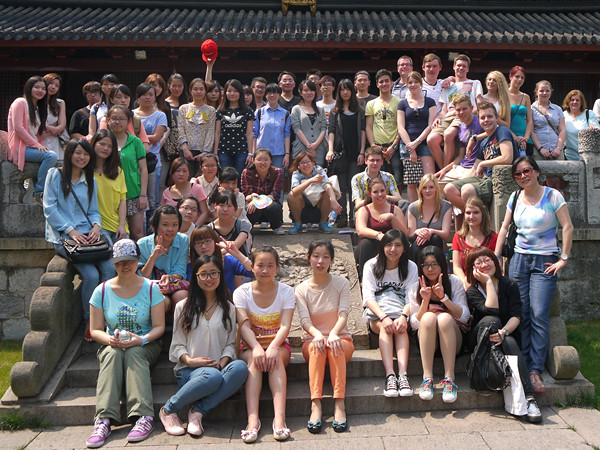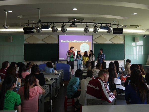 | 2013年5月21日,来自德国高中的十几名学生来到了我院开展交流活动,德语系师生负责接待、交流,大家相互自我介绍、分组游戏、参观校园、游览孔庙,德语系的学生充分展现了中国大学生的热情与风采,双方建立了良好的友谊。(德语系) | ||
