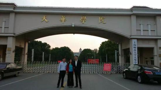 (国诚金融王建章总裁、管理学院程葆青院长和专业教师盛术俊合影)