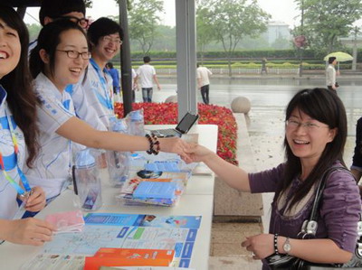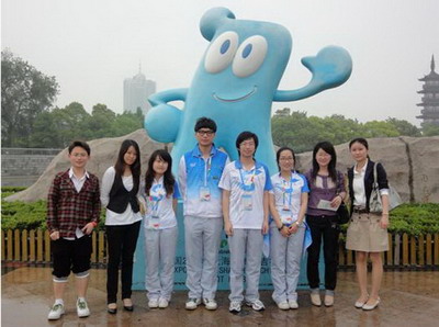 2010年5月18日下午,经管系党支部孙中淼、团总支书记夏丽萍前往嘉定区博乐路,向服务于世博城市站点的经管系愿者们表示慰问。(夏丽萍)