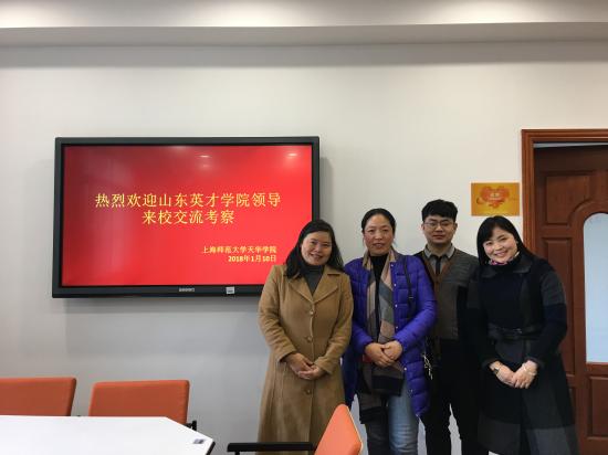 2018年1月10日下午,山东英才学院学前教育国家级实验教学中心推广管理部主任杨爱兰和学前教育实验教学中心产业部主任李宇辉访校交流考察,天华学院教育学院副院长徐娟、教育学院院长助理扶跃辉在教育学院光华楼302会议室接待。