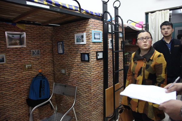 | 2014年4月1日晚8:30至10点,工学院进行了寝室文化节特色寝室的评选活动,党总支副书记王慧荣,自管会负责人彭刘刚及部分自管会学生干部深入到参赛学生寝室里进行了特色寝室评选的活动。 为了更加真实地反映学生寝室文化情况,本次评选采用了“突击下寝室”的方式,最终,六个获奖寝室分别以学习标兵型、才艺缤纷型、温馨型寝室、爱心型寝室、活力四射型从众多参赛寝室中脱颖而出, 他们将代表工学院参加校级寝室文化节。 | ||