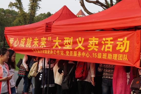 10月26日16:10,艺术设计学院党员工作站、党员服务中心与班助理团队联合举办的“爱心成就未来”义卖活动,在月华楼与昇华楼之间的空地举行。为了响应艺术设计学院党总支的号召,给艺术设计学院需要帮助的同学送去温暖,此次义卖活动所获得的收入将全部放入艺术设计学院的阳光互学基金。