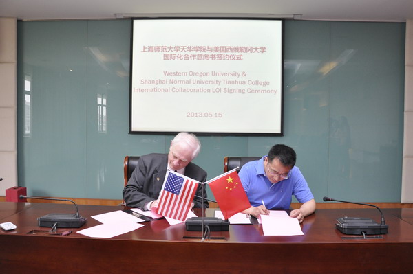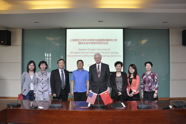| 2013年5月15日,在上海市对外教育交流中心的联络下,美国俄勒冈大学副校长Dr. Steve Scheck、国际部杨主任(Neng Chiang Yang)及上海市对外教育交流中心的领导等一行5人莅临我院进行访问并洽谈国际合作项目,双方签订了校际合作意向书。 | ||