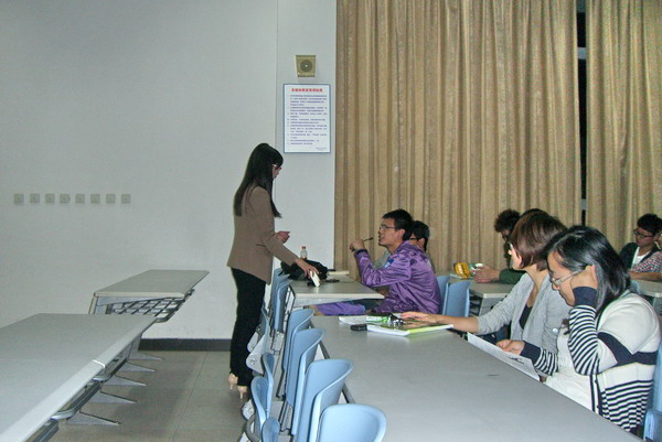 | 2012年10月17日晚,学院2012-2013第一学期“名校视频双语导学”系列讲座在日阶402正式开讲,通识教学部游洋阳老师主讲《成功之道》。 游洋阳老师精心选用国外名家英文演讲视频,围绕“如何成功,如何保持成功,如何区别表面的胜利与真正的成功”这一主题,采取现场问答,小组讨论,头脑风暴等多种互动手段,在锻炼学生英文水平的同时,鼓励同学们思考规划自己的人生之道。现场发言踊跃,气氛热烈,充分展现了天华学子对未来的殷切期望。(通识教学部) | ||