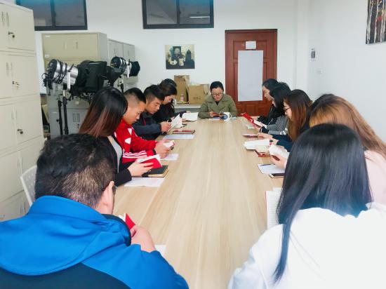 金秋时节,中国共产党第十九次全国代表大会顺利闭幕。为了学习贯彻十九大精神,艺术设计学院党总支于2017年11月10日上午,在光华楼214开展了十九大精神专题学习暨辅导员经典阅读交流会。本次会议由党总支书记王慧荣主持,党总支副书记徐珊珊等其他正副辅导员参与。以学习十九大精神为主,分为两个环节——党总支书记分享校党委组织学习十九大精神的感悟和辅导员经典阅读交流会。
