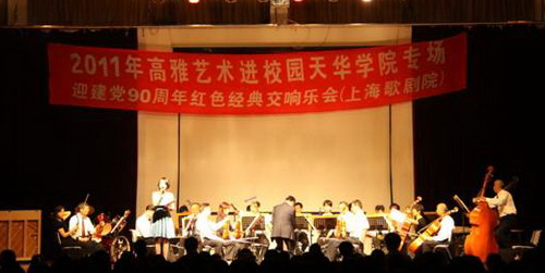 5月11日下午,2011年高雅艺术进校园天华学院专场――迎建党90周年红色经典交响音乐会在体育馆隆重举行。