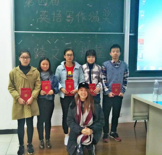 2017年11月23日下午,由我校国际交流处与英孚教育联合举办的“感恩节征文大赛”在日阶402举行颁奖典礼。校监、语言文化学院院长史文、国际交流处处长胡珍、副处长梁杰、处长助理夏智源以及来自英孚教育的王老师、外籍教师Judy一同出席本次活动。