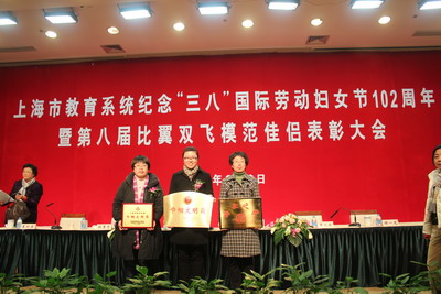 2012年3月6日下午,上海市教育系统纪念“三八”国际劳动妇女节102周年暨第八届比翼双飞模范佳侣表彰大会在上海交大医学院懿德楼报告厅隆重举行。
