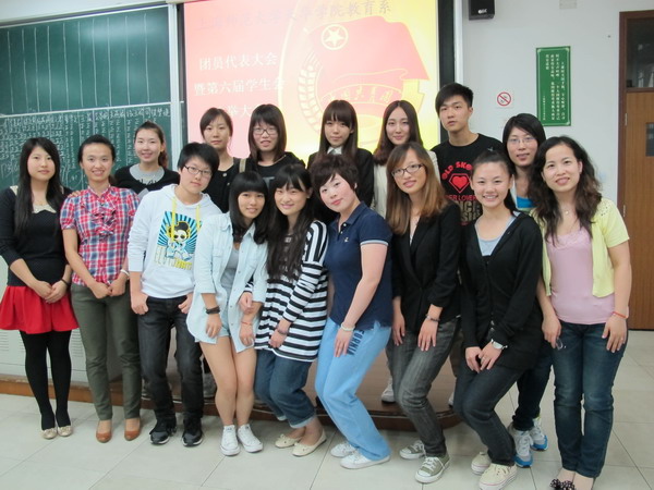 | 2012年10月9日,教育系在日阶202召开了上海师范大学天华学院教育系第六届团员代表大会暨学生代表大会。教育系常务副主任夏明烨,教育系、心理系联合党总支书记沈晓燕,党总支副书记韩苏曼,学前教育、小学教育专业学生联合党支部副书记尤琼,教育系团总支书记朱可等参加本次大会。 大会由团总支书记朱可致辞,总结了教育系学生会历年来的工作成果,对未来活动的开展提出了更高的要求。教育系、心理系联合党总支书记沈晓燕宣布陆文意等11名同学为教育系新一届学生会干部。(教育系) | ||