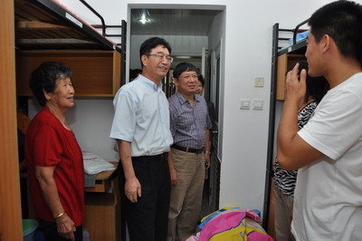 | 2012年9月14日,是我院2012级新生来校报到的日子。郭书记、石院长一行深入学生宿舍后,仔细查看学生宿舍的设备设施,详细询问了新生入学报到、入住情况和对生活的适应情况,还和同学们拉起家常,气氛融洽。 | ||