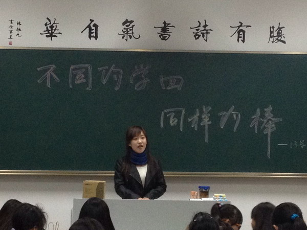 | 2013年11月19日晚,教育与艺术学院教育党总支党建中心在日华楼5楼教育类专业2013级各班固定教室,组织2010级优秀学生与2013级新生进行“老生学习经验交流会”,特别邀请了2010级钟乃夫、杨小力、陈曦雨等6位各方面表现特别优秀的大四学生向刚进校的学弟学妹们讲述自己在学校的学习生活、成长困惑和经验教训。同时,他们还对教育类专业特有的技能课《钢琴基础》、《美术基础》、《试唱练耳》、《乐理》等专业课程交流了自己的心得体会,引起了同学们的共鸣。最后的互动环节精彩纷呈,学长学姐的真诚分享赢得了一阵阵热烈的掌声。 此次活动作为教育类专业“学风建设月”活动之一。通过学习经验交流会营造了优良的学风氛围,加深了新生对本专业的理解,明确了努力的方向。(教育与艺术学院) | ||
