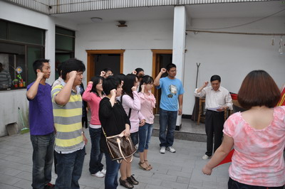 | 为迎接党的89岁生日,加强世博宣传,发挥党员先锋作用, 6月11日行政二支部组织全体党员前往苏州三山岛开展了“重温入党誓词,永葆党员先进性”主题活动。 学院组织部长顾绍元领誓。党员们面对鲜艳的党旗,庄严地举起右手,重申了忠诚于党的誓言,表达了为党的教育事业奋斗终身的愿望和决心。(董海霞) | ||