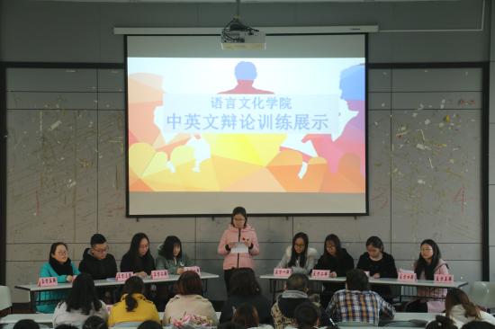 2017年12月12日,语言文化学院在日华楼阶梯教室401举行了中英文辩论训练展示活动。党总支书记孙超、副书记杨央、分团委书记和辅导员沈美出席。活动邀请了辩论训练指导老师卜迅和外教Clayton Wylie亲临现场,学院各年级辩论组组长、辩论主席及学生代表到场学习观摩。
