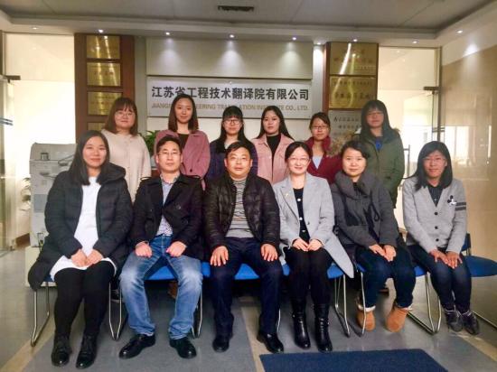 3月4日,“工作坊”开展了第一次活动,由语言文化学院英语专业负责人胡玥、“工作坊”负责人王晓岚带领六名学员前往南京——校外指导老师所在单位江苏省工程技术翻译院有限公司进行一天的参观、交流和学习活动。公司包亚芝董事长、朱副总经理、人事张主任以及翻译项目经理兼天华学院“翻译工作坊”客座指导教师张杭琳热情接待了“工作坊”一行八人。