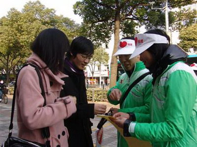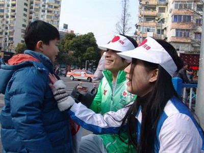 | 2011年1月8日,我校25名世博志愿者参加了由上海市慈善基金会、上海市红十字会和上海市文明办等多家单位组织的“蓝天下的至爱――2011爱心全天大放送”的万人上街募款活动。所有“小白菜”、“小蓝莓”统一佩戴印有爱心标志的工作帽,手持爱心募捐袋,在嘉定区主要路段以及部分商圈等公共场所,传播慈善理念,培育慈善文化。路人深受感染,纷纷自愿捐款,捐款人将获赠一枚爱心标志。 此次活动的主题是“万人捐,帮万人,让特困家庭过好年”。全部善款将在春节前送入本市特困家庭,让他们能够在爱的暖流中度过一个欢乐祥和的春节。(团委 康淼) | ||