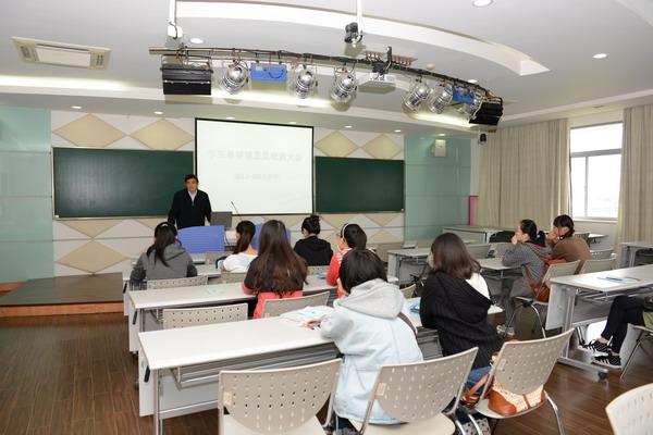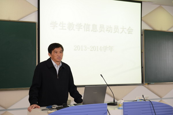 | 2013年10月22日,教务处在明华楼五楼演播厅召开学生教学信息员新学年动员大会,教务处处长助理张�琰主持会议。教务处兼科研处处长陈道炯发表讲话,激励全体新任信息员要秉承“诚信•责任”,勇于讲真话讲实话。 | ||