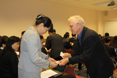 | 8月8日上午,旧金山大学州立大学国际教育学院国际课程认证委员Jerald Combs教授为我院第三批干部赴美研修团全体成员作了首场讲座,详细介绍了美国旧金山州立大学的课程设置与教学评价。讲座接近尾声时,研修团成员和Jerald Combs教授开展了热烈的互动。(第三批干部赴美研修团) | ||