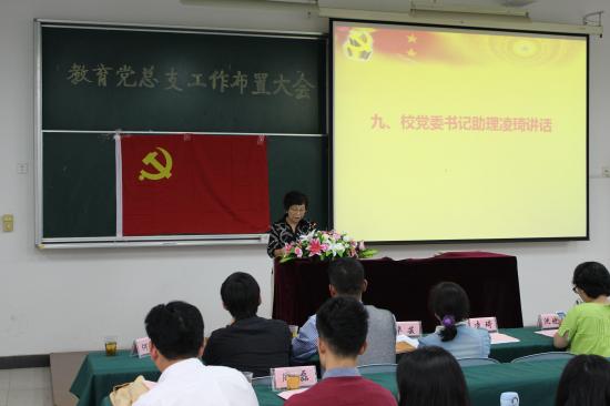 2015年10月14日下午16点30分,教育学院党总支在日华楼302阶梯教室召开2015-2016学年第一学期工作布置大会。学校党委书记助理凌琦,教育学院党总支书记沈晓燕,副书记华芸、章双喜,教育学院分团委书记朱可,以及教育学院各学生党支部正副书记和专职辅导员们出席大会,教育学院学生党员、预备党员、积极分子共165人参加大会。教育学院党建中心主任罗昕宇主持。