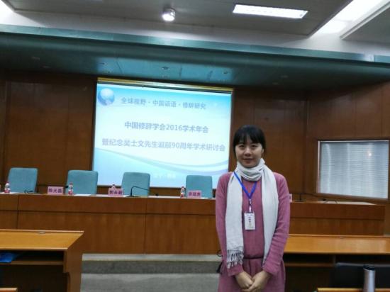 语言文化学院汉语言文学专业主任翁晓玲副教授作为中国修辞学会代表出席了大会,并担任分会场主持人,在会上作题为《对外汉语学习词典的国家形象修辞——以<商务馆学汉语词典>为例》的学术汇报。该论文在会上荣获“中国修辞学学会2016年学术年会优秀青年学者论文奖”一等奖。本次大会共评选出优秀青年学者论文奖一等奖3名、二等奖6名。