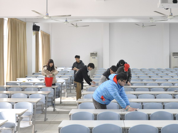 | 2014年3月5日16:30,上海师范大学天华学院教育与艺术学院艺术类分团委组织全体学生志愿者在日华楼集合,对日华楼所有教室进行了统一清理,志愿者们用实际行动学习雷锋精神,体现了天华学子良好的精神面貌,教室环境也因此变得焕然一新。 | ||
